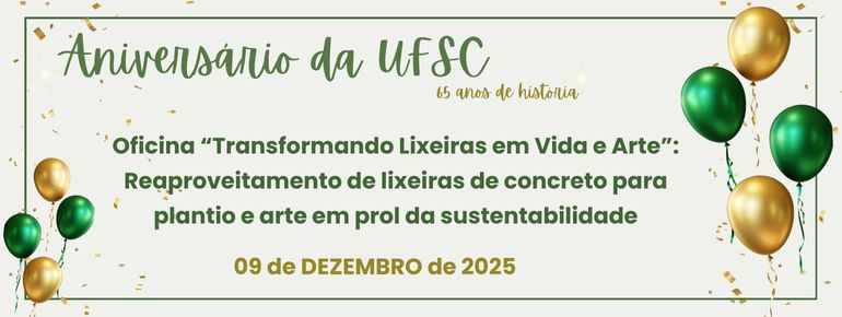A Sala Verde UFSC e a Coordenadoria de Gestão Ambiental da UFSC convidam a comunidade universitária e externa para uma vivência prática, artística e educativa em celebração aos 65 anos da UFSC!