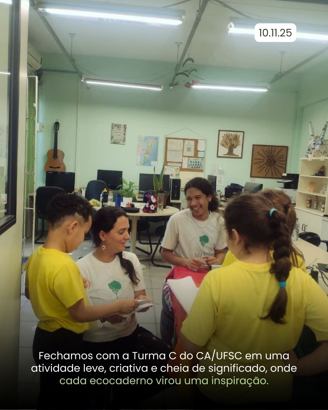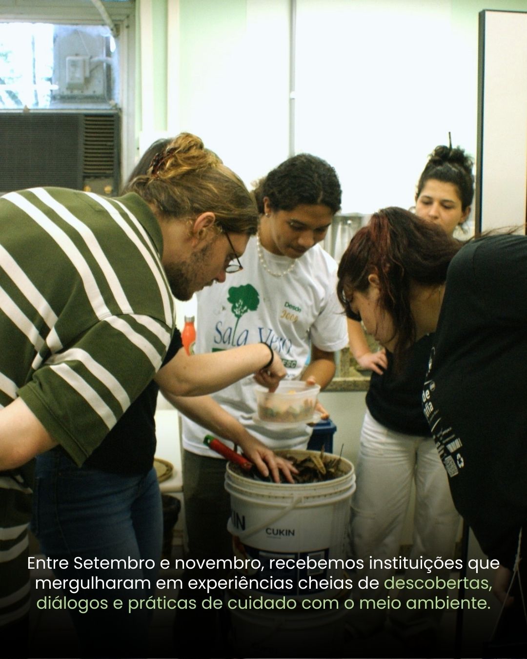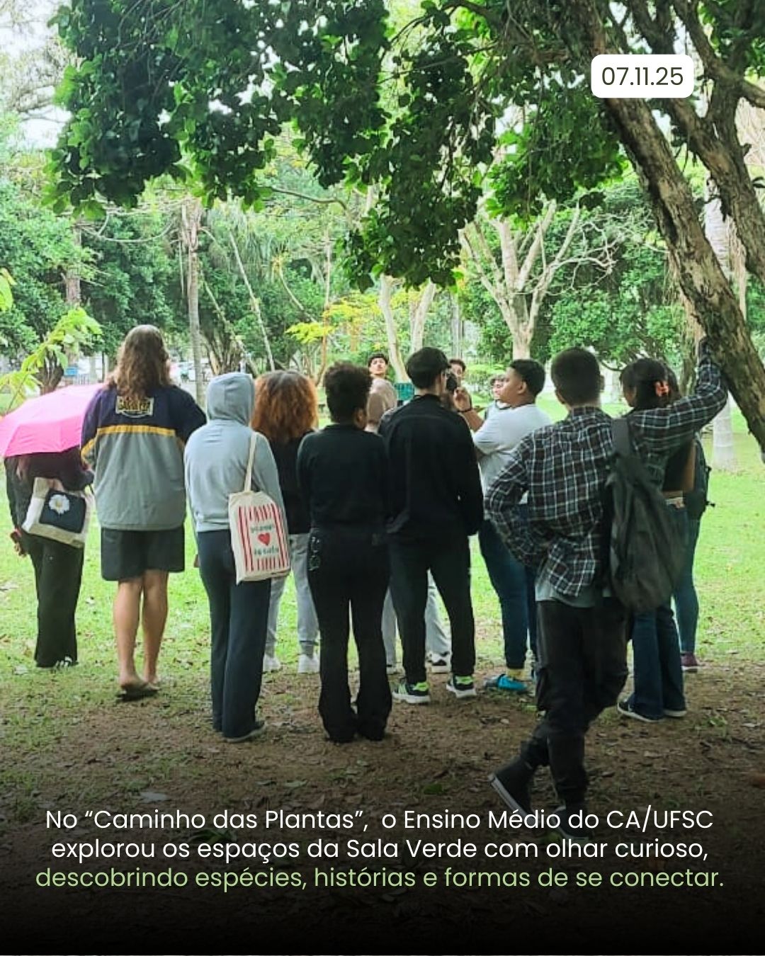 Entre setembro e novembro de 2025, a Sala Verde UFSC recebeu instituições de ensino e coletivos para vivências repletas de descobertas, diálogos e práticas de cuidado com o meio ambiente. As atividades fizeram parte do Edital Nº 0011/SV/CGA/GR/UFSC/2025, que selecionou Multiplicadores (estudantes, professores, associação de bairro, comunidade no geral) vinculados às Instituições (UFSC, Escolas Públicas, demais Instituições Públicas ou Privadas sem Fins Lucrativos) e Coletivos interessados em participar das atividades ofertadas na Sala Verde UFSC em 2025.02.